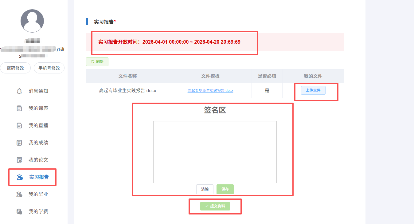 (2)上传实践报告,电子签名